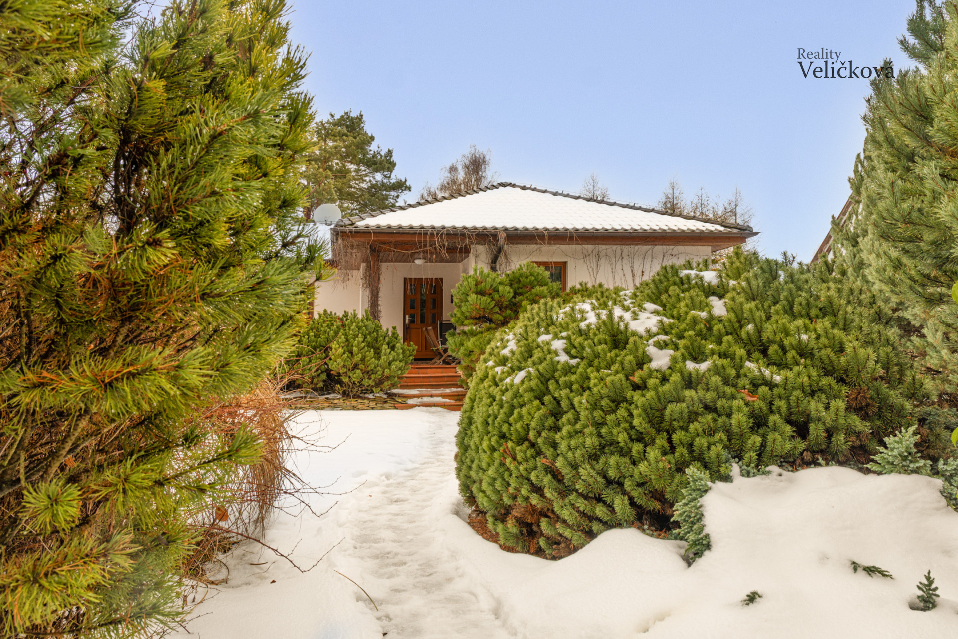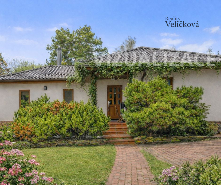 Zahrada je velmi pečlivě udržovaná, osázená stromy, keři a travinami. Za domem se nachází zahradní domek. Krytá terasa je orientována na jižní stranu, směrem k lesu. Pozemek je zcela oplocen, vstup zajišťuje brána s automatickým ovládáním.
