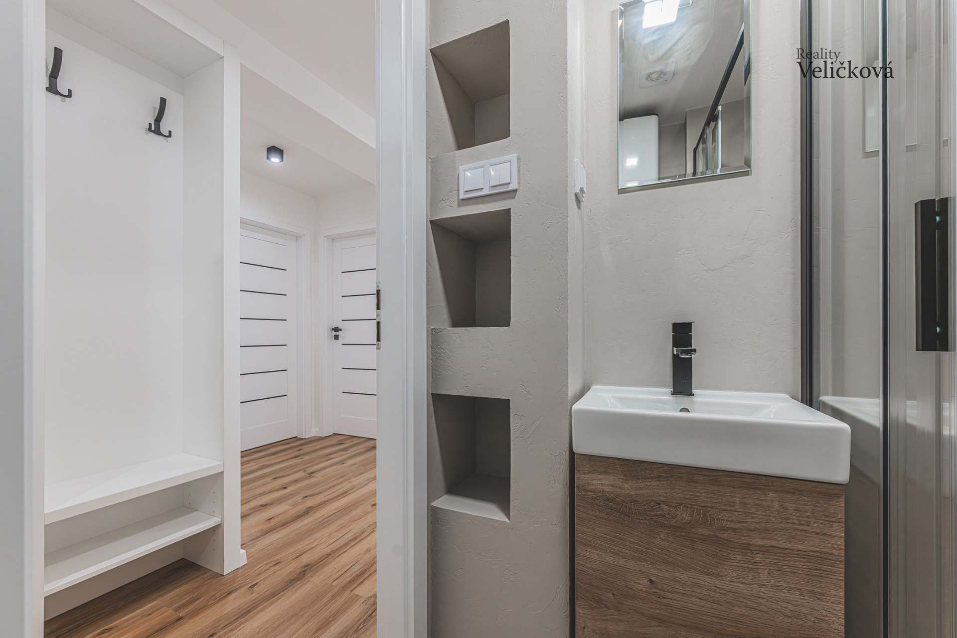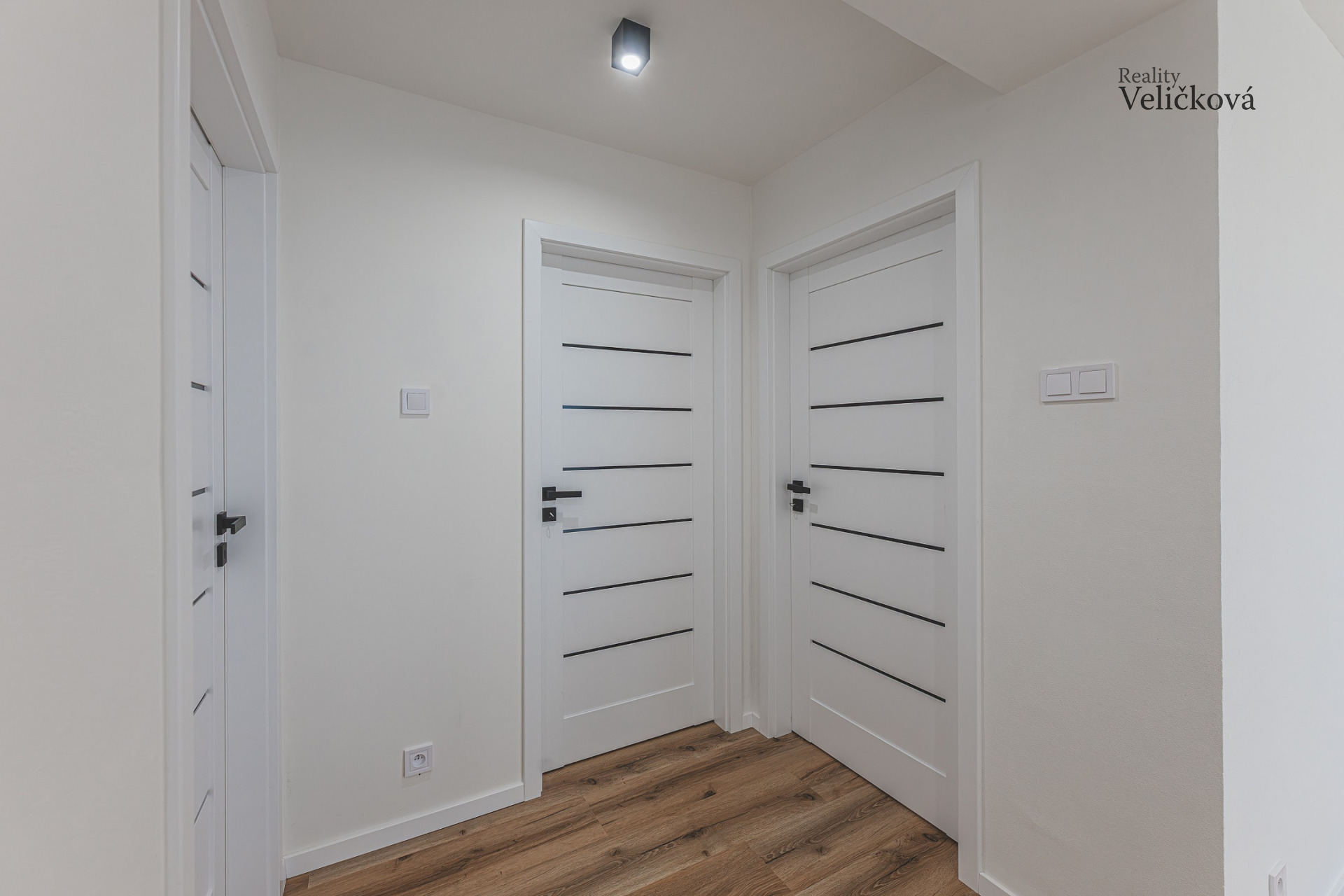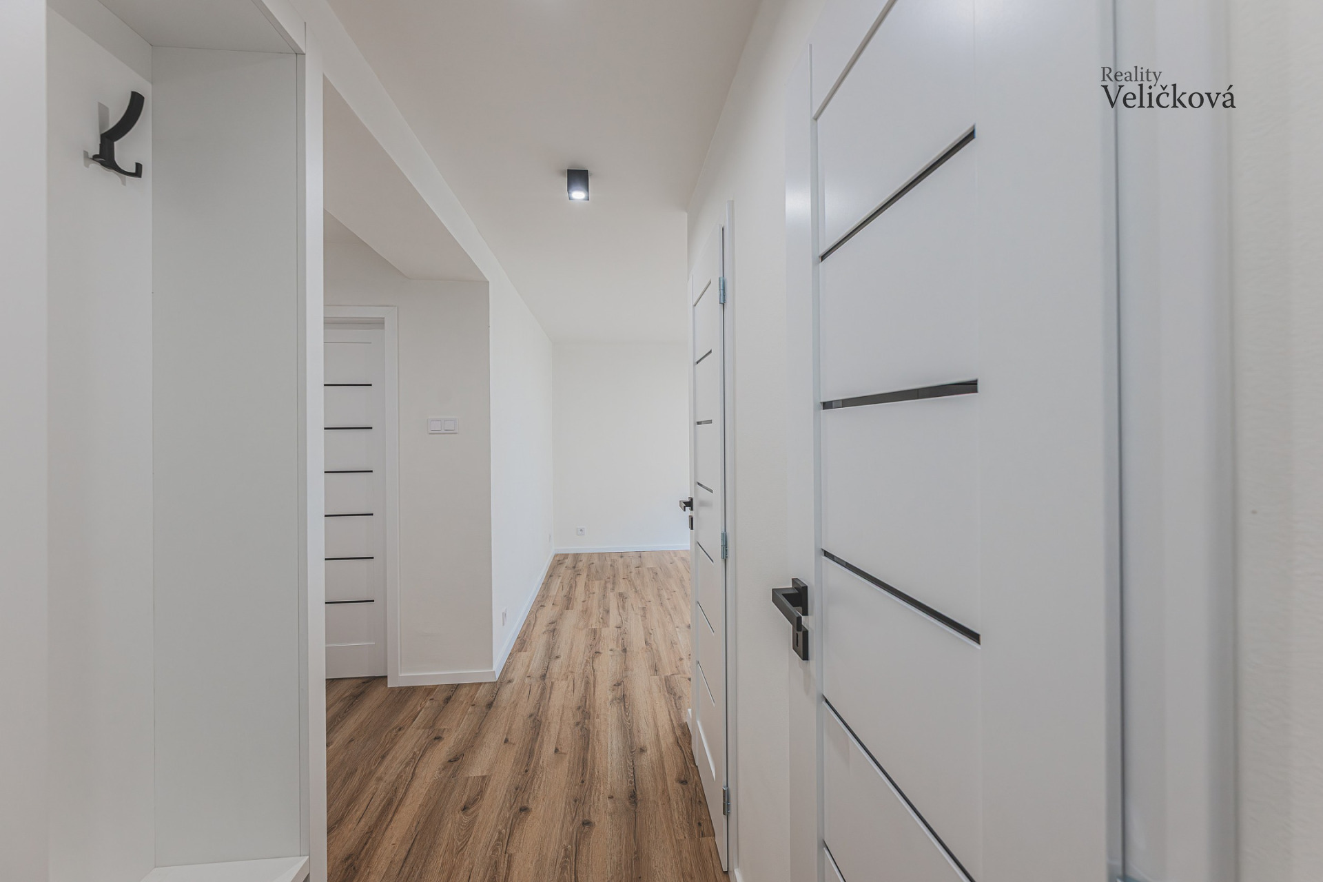 Nabízíme k dlouhodobému pronájmu kompletně zrekonstruovaný byt o dispozici 3+kk v klidné části Hradce Králové, v ulici Písečná. Byt se nachází v udržovaném domě a nabízí příjemné, klidné bydlení s dobrou dostupností do centra města i k občanské vybavenosti. V prvním patře zvýšeného podlaží se nachází bytová jednotka. Dispozice bytu je praktická a přehledná. Vstupní chodba poskytuje prostor pro odkládání a navazuje na samostatnou toaletu a koupelnu se sprchovým koutem, umyvadlem, místem na pračku a vestavěnými nikami. Součástí bytu je také samostatná šatna vybavená vestavěnými skříněmi na míru. Obývací pokoj je propojen s kuchyňským koutem, kde je instalována nová kuchyňská linka s vestavnou elektrickou troubou, indukční varnou deskou, myčkou nádobí a digestoří. Byt disponuje dvěma samostatnými, neprůchozími ložnicemi, přičemž jedna z nich má vstup na menší balkón orientovaný do klidného okolí. K bytu náleží prostorná sklepní kóje o výměře přibližně 9 m². Vytápění je řešeno centrálně dálkově, ohřev teplé vody zajišťuje samostatný elektrický bojler. Byt prošel kompletní a pečlivou rekonstrukcí, byly provedeny nové rozvody, podlahy, stěrky, odhlučnění stropů, osazeny nové interiérové dveře, kuchyňská linka i sanita. Od dokončení rekonstrukce nebyl byt dosud obýván, vše je nové a nepoužívané. Lokalita Písečná patří mezi vyhledávané části Hradce Králové, v docházkové vzdálenosti se nachází Fakultní nemocnice Hradec Králové, zastávky MHD, obchodní centrum Futurum i kompletní občanská vybavenost. Parkování je možné bezplatně v ulici nebo v jejím okolí. Nájemné činí 24.000 Kč měsíčně, zálohy na služby jsou stanoveny dle počtu osob, energie se přepisují na nájemníka. Odměna za zprostředkování odpovídá výši jednoho měsíčního nájemného. Byt je k dispozici ihned.