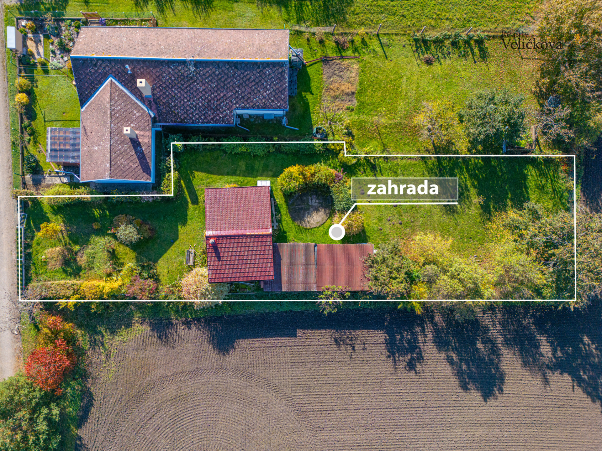Pozemek o výměře 386 m² je oplocený, slunný a pečlivě udržovaný. Vzrostlé stromy poskytují soukromí i příjemný stín. Garáž a zpevněná plocha zajistí pohodlné parkování přímo u domu. Celý prostor vyzařuje klid a venkovskou pohodu – přesně ten pocit, který od chalupářského místa čekáte.