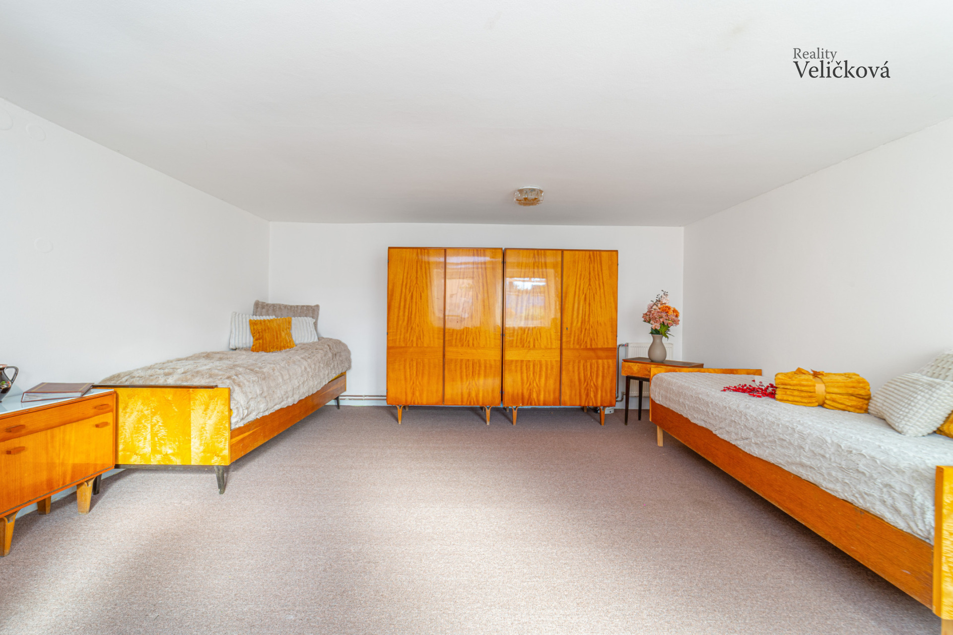 Nad obytnou částí domu se nachází rozsáhlé podkroví s možností vybudovat až dvě další obytné místnosti a koupelnu, čímž lze získat celkovou dispozici až 5+kk či 5+1. Podél verandy navazuje praktický úložný prostor vhodný jako dílna nebo sklad dřeva, jenž posiluje chalupářský charakter tohoto místa.
