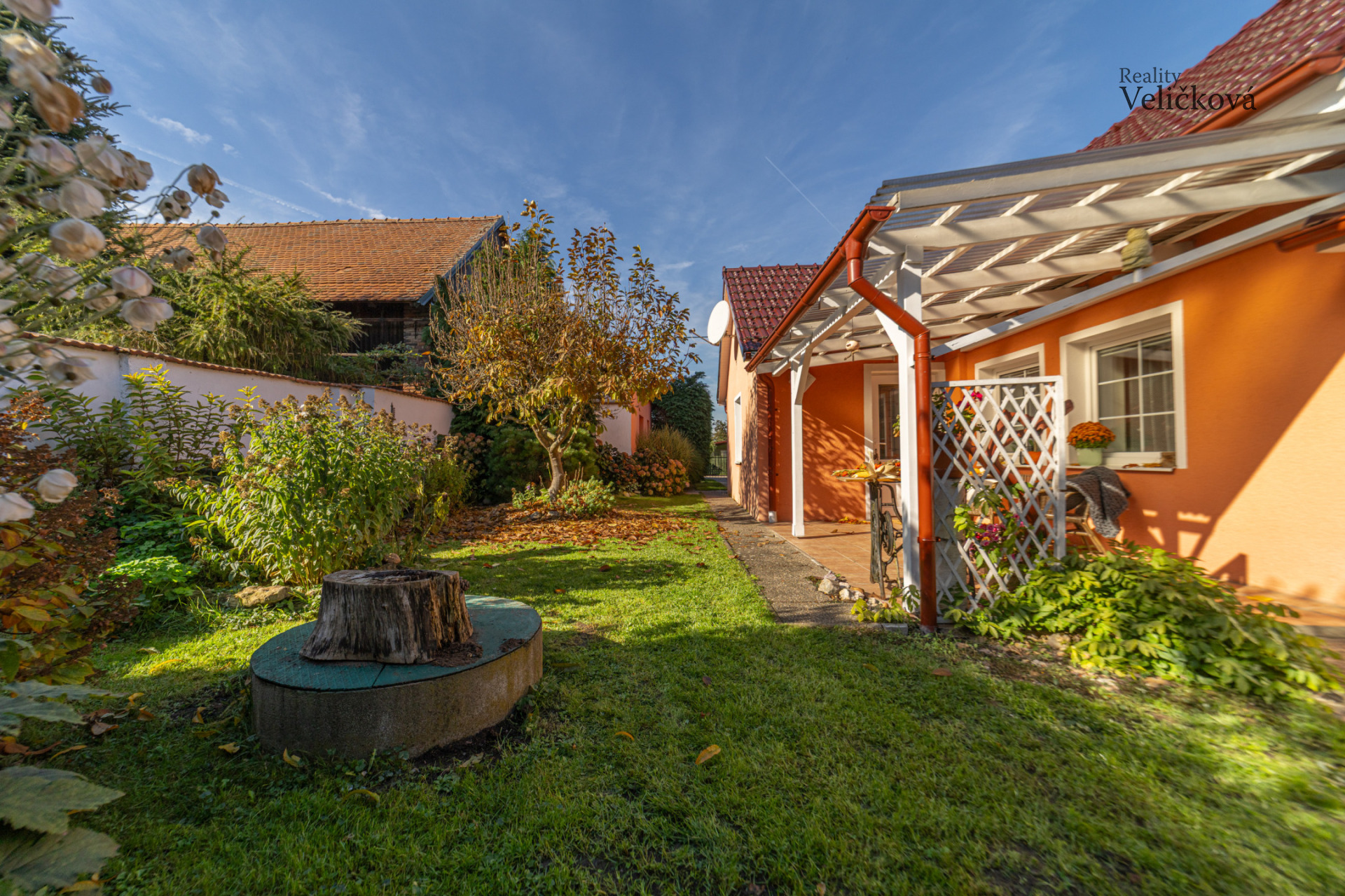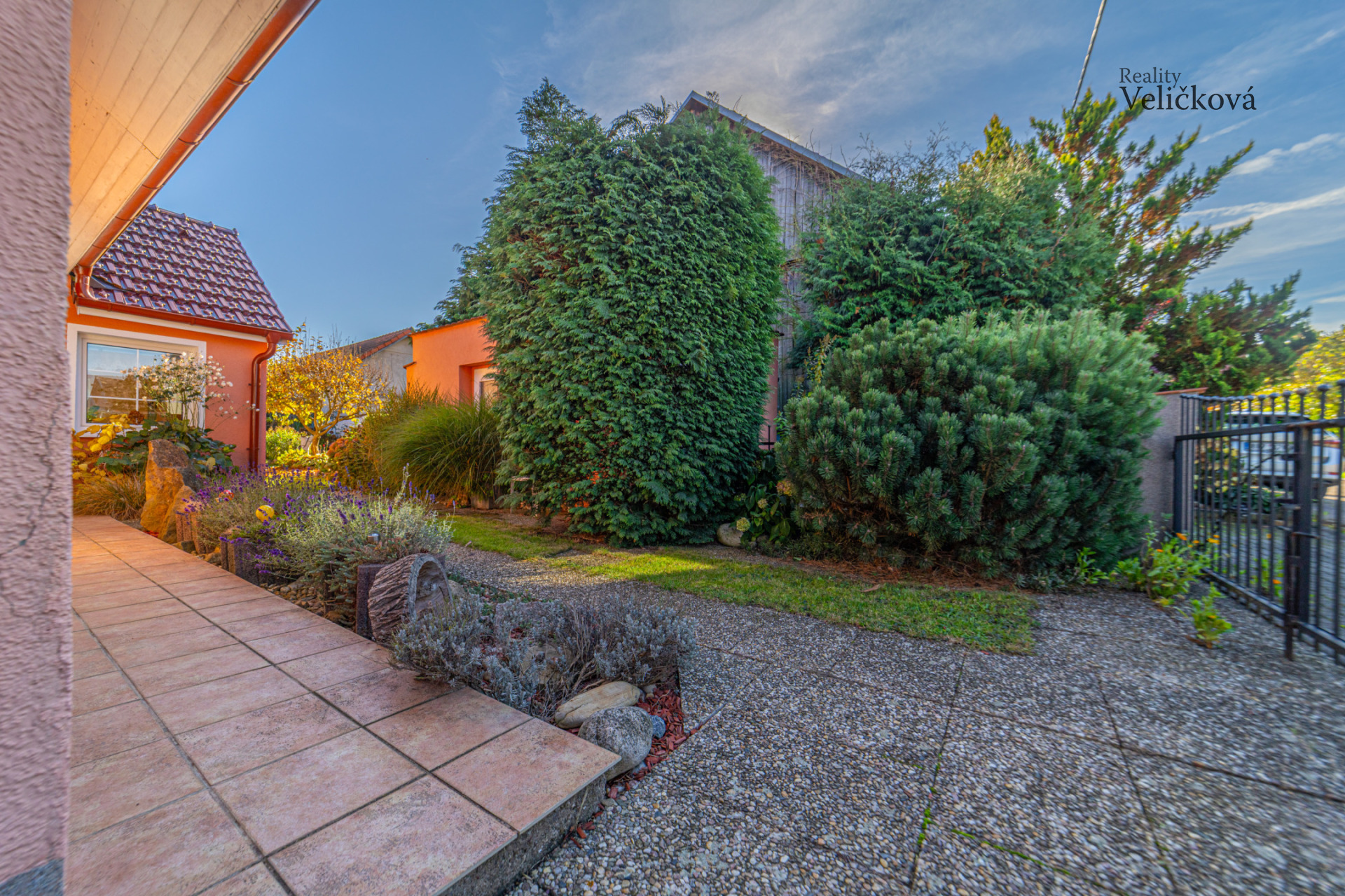 Užitná plocha činí 93 m², z toho 83 m² tvoří obytná část řešená jako 3+1 s možností dalšího rozšíření. Za kovanou brankou vás přivítá okrasná zahrada se zelení a vzrostlými keři, která dýchá venkovským klidem a láká k odpočinku. Dláděná cesta vede až k zastřešené verandě – místu ideálnímu pro ranní kávu, večerní posezení i společné chvíle s rodinou.