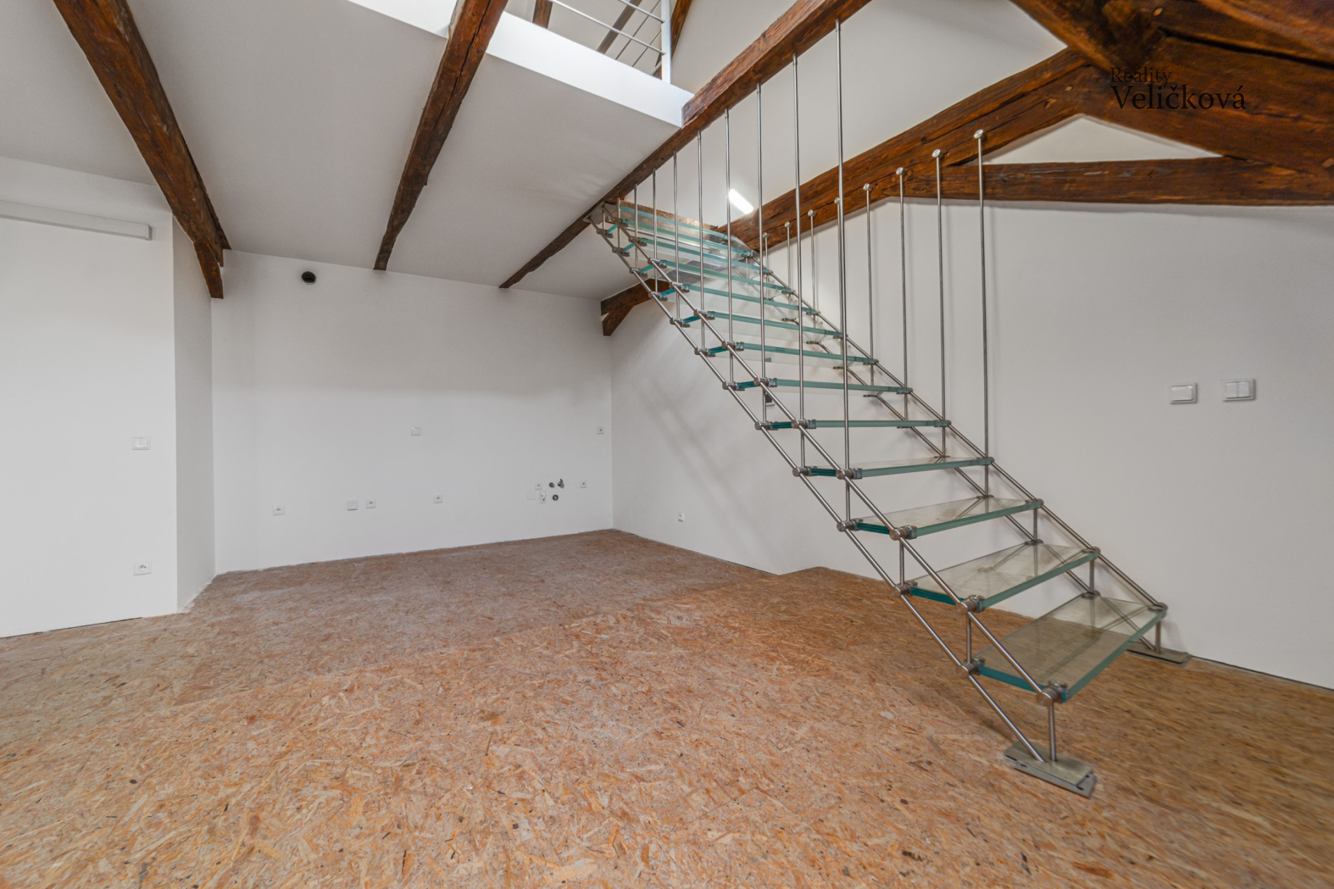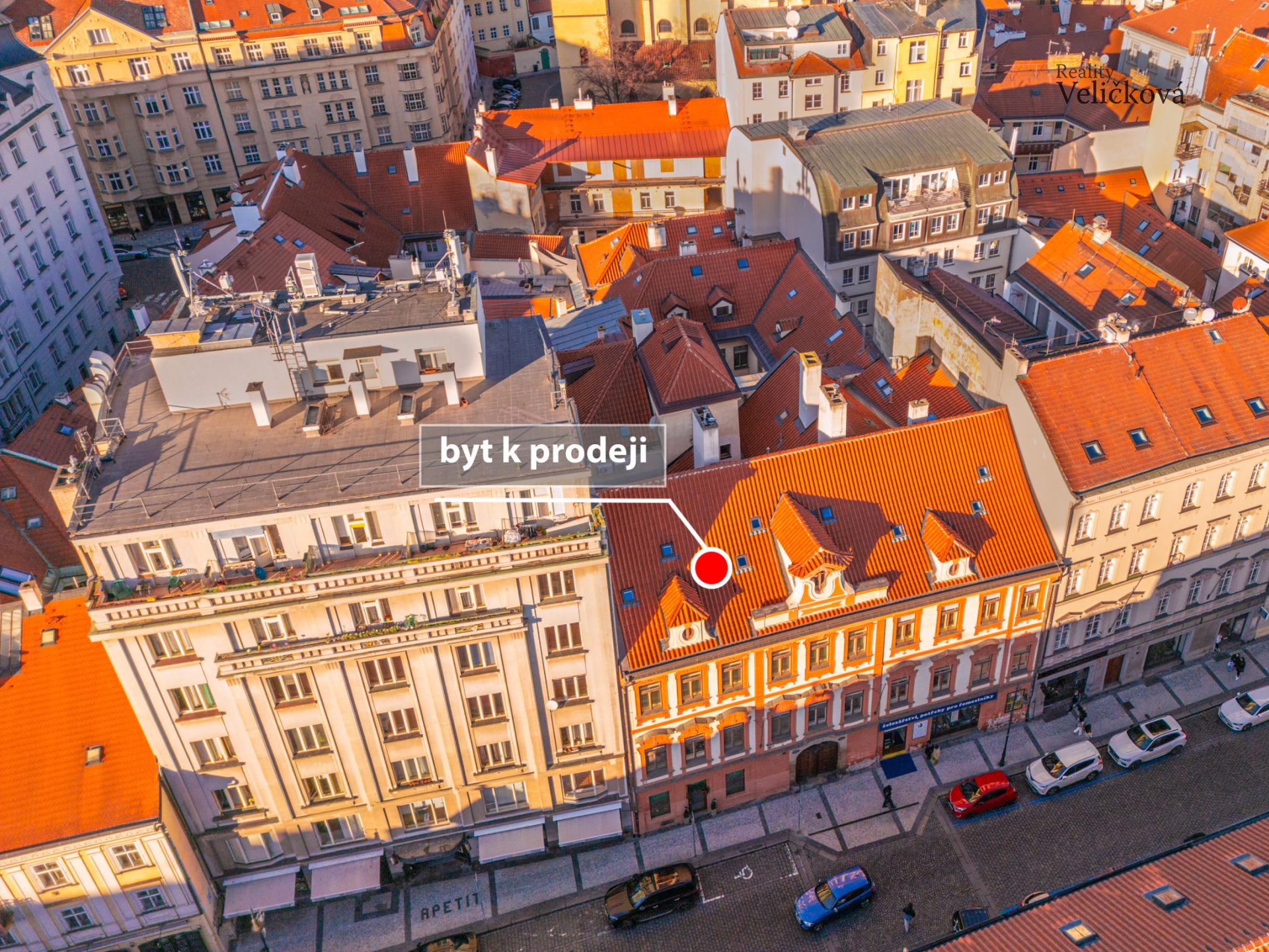 Unikátní mezonetový byt v podkroví historického domu v srdci Prahy 1