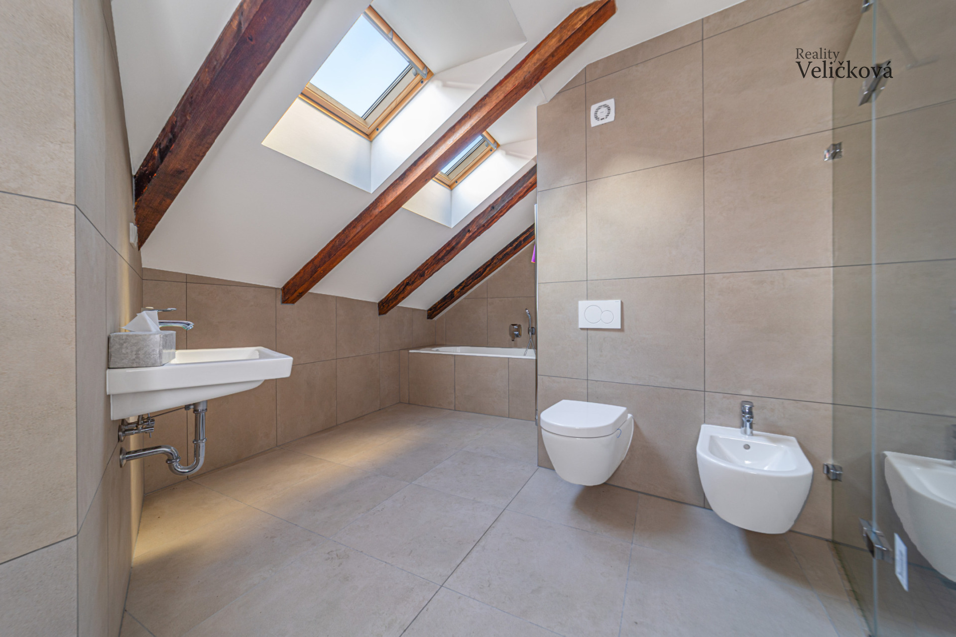 Nadstandardně prostorný byt o celkové obytné ploše 170 m² byl vytvořen citlivou a promyšlenou půdní vestavbou, která propojuje autentickou atmosféru staré Prahy s moderními nároky na komfortní bydlení.