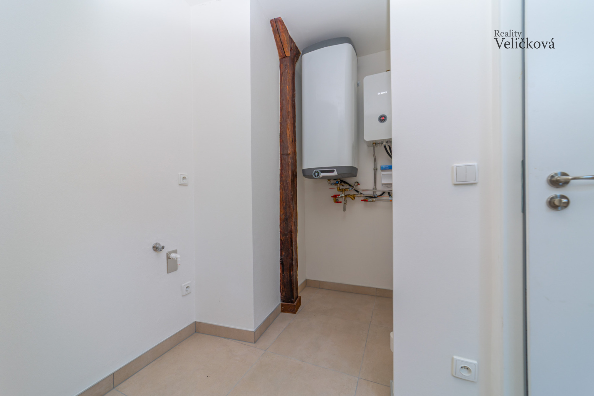 Byt zaujme na první pohled svou vzdušností, světlem a osobitým charakterem. Přiznané dřevěné trámy, vysoké stropy a otevřená dispozice vytvářejí nadčasový interiér s jedinečnou atmosférou. Díky mezonetovému řešení je přirozeně oddělena společenská a klidová část.