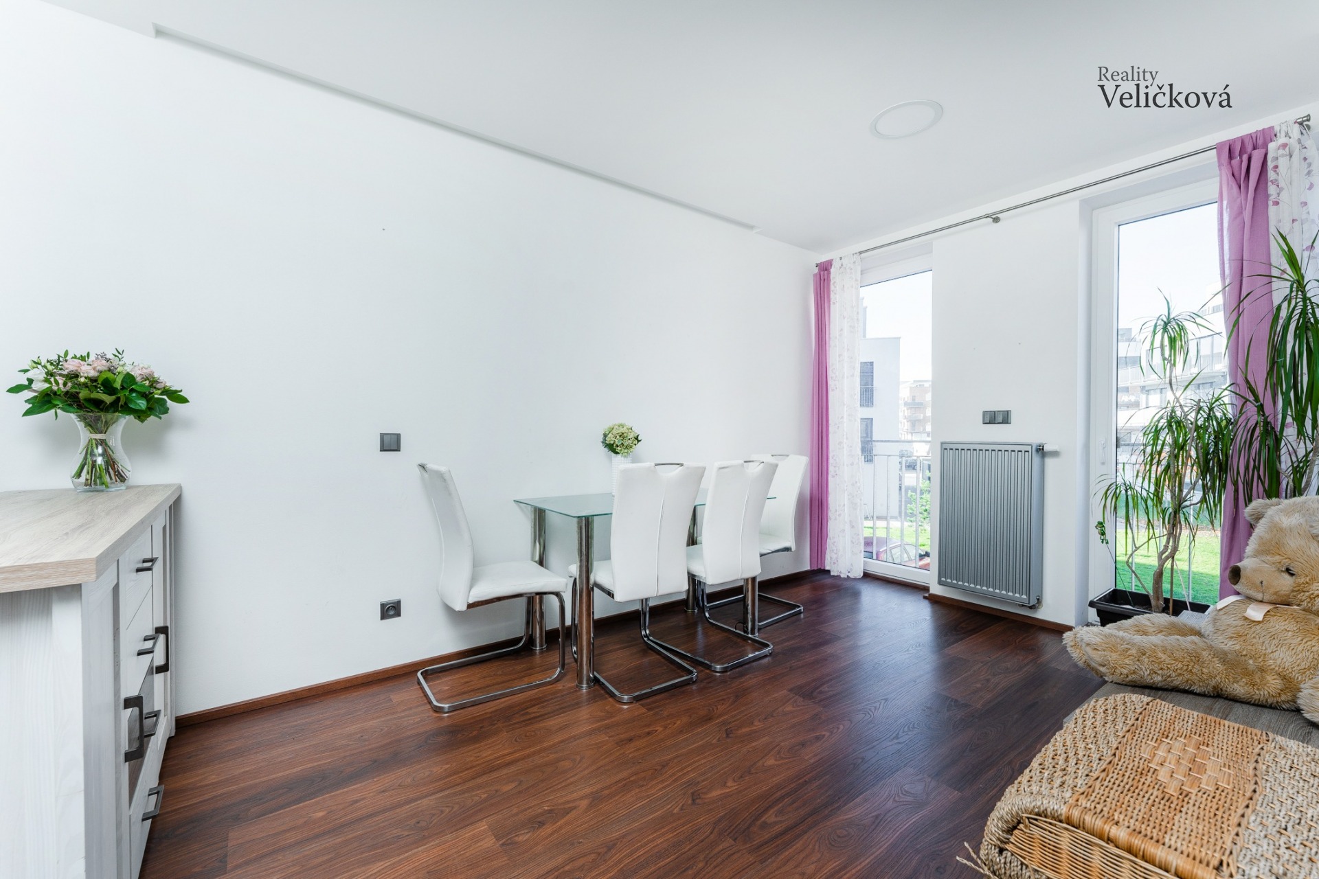 Nádherný byt 2+kk s prostorným balkonem (9 m2) a vlastním parkovacím stáním v novostavbě z roku 2017