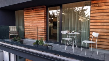 Nabízíme luxusní byt 3+kk v novostavbě o výměře 114 m2, z toho terasa 14 m2 s orientací na západ s nádherným výhledem na zahrady. Rezidence je vybudována uprostřed staré zástavby a je určena klientům, kteří ocení, že si svůj domov nepořizují na novém sídlišti, ale v klidné vilové čtvrti. Uzavřený komplex nabízí bezpečnou podzemní garáž, výtah a krásně upravenou vnitřní privátní zahradu. Residence má celkově pouze 14 bytových jednotek. Standardy projektu zahrnují okna s izolačním trojsklem, sádrové omítky, vinylové podlahy, bezfalcové interiérové dveře, velkoformátovou Italskou keramiku, koupelnovou sanitu se zařizovacími předměty značky Grohe. Dále na balkónech a terasách dlažbu na terčích a skleněné zábradlí.