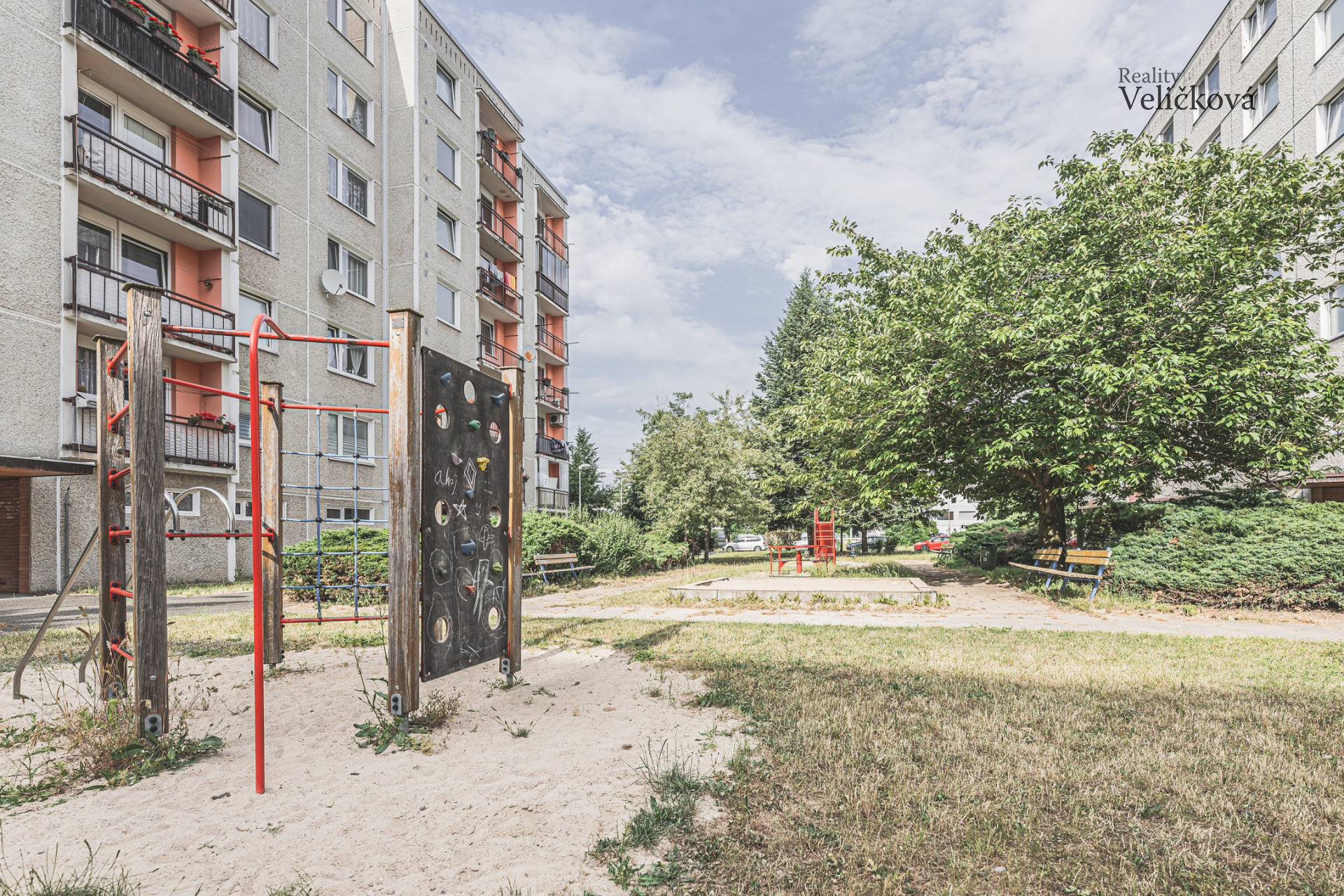 Bytová jednotka disponuje vstupní chodbou s vestavěnou skříní, komorou, kde je umístěn policový systém - možnost umístit pračku), koupelnou a WC (původní umakartové jádro), obytná místnost se skříněmi a malá kuchyňská linka se vstupem na balkon. Okna jsou plastová se žaluziemi, podlahy plovoucí a linoleum.