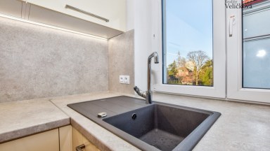 - kuchyň s moderní kuchyňskou linkou se zabudovanými spotřebiči (indukční deska, el. trouba, lednice s mrazákem, digestoř, myčka) a obývacím pokojem s jídelním prostorem vybaveným jídelním stolem a elegantními křesílky