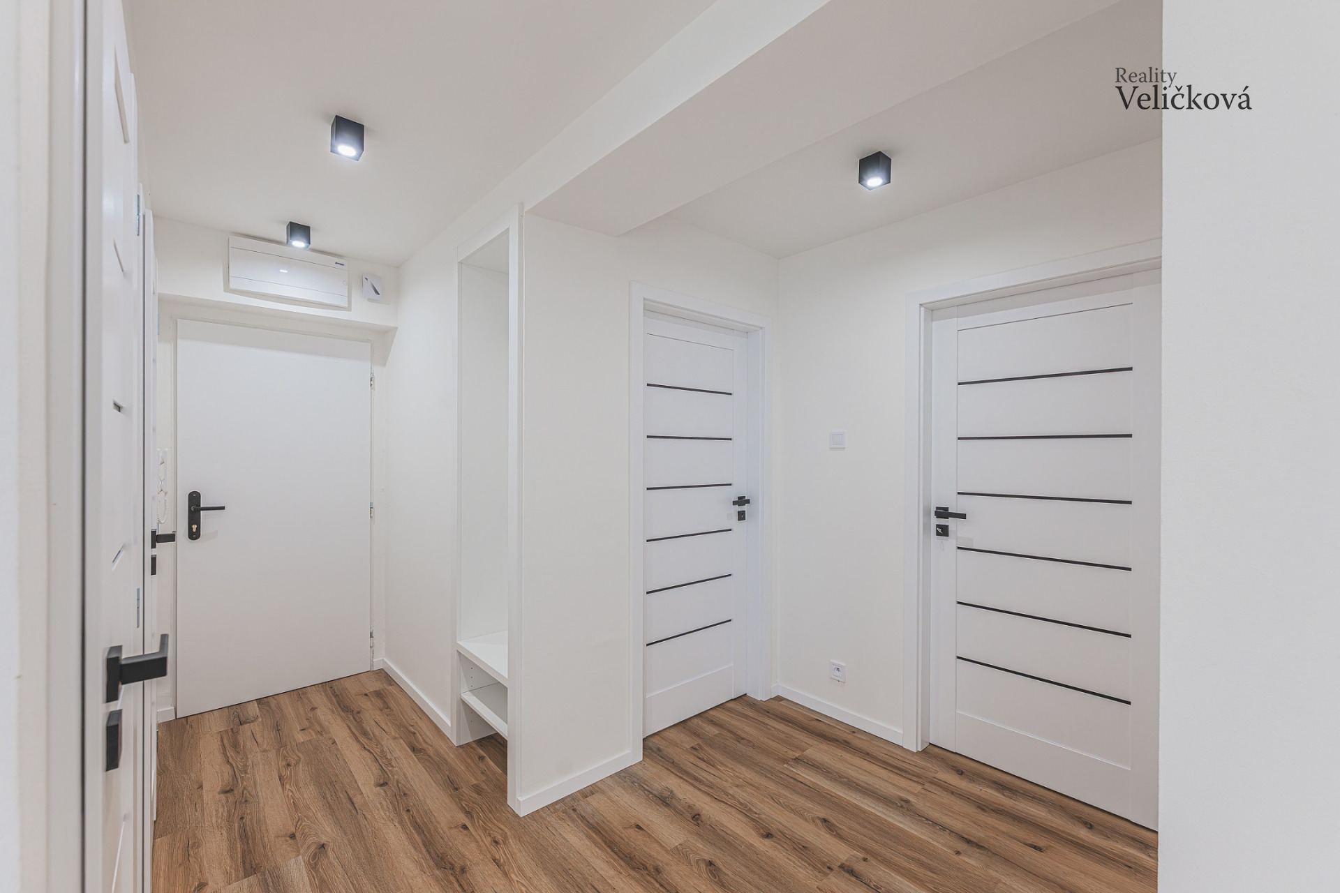 Nabízíme k dlouhodobému pronájmu kompletně zrekonstruovaný byt o dispozici 3+kk v klidné části Hradce Králové, v ulici Písečná. Byt se nachází v udržovaném domě a nabízí příjemné, klidné bydlení s dobrou dostupností do centra města i k občanské vybavenosti. V prvním patře zvýšeného podlaží se nachází bytová jednotka. Dispozice bytu je praktická a přehledná. Vstupní chodba poskytuje prostor pro odkládání a navazuje na samostatnou toaletu a koupelnu se sprchovým koutem, umyvadlem, místem na pračku a vestavěnými nikami. Součástí bytu je také samostatná šatna vybavená vestavěnými skříněmi na míru. Obývací pokoj je propojen s kuchyňským koutem, kde je instalována nová kuchyňská linka s vestavnou elektrickou troubou, indukční varnou deskou, myčkou nádobí a digestoří. Byt disponuje dvěma samostatnými, neprůchozími ložnicemi, přičemž jedna z nich má vstup na menší balkón orientovaný do klidného okolí. K bytu náleží prostorná sklepní kóje o výměře přibližně 9 m². Vytápění je řešeno centrálně dálkově, ohřev teplé vody zajišťuje samostatný elektrický bojler. Byt prošel kompletní a pečlivou rekonstrukcí, byly provedeny nové rozvody, podlahy, stěrky, odhlučnění stropů, osazeny nové interiérové dveře, kuchyňská linka i sanita. Od dokončení rekonstrukce nebyl byt dosud obýván, vše je nové a nepoužívané. Lokalita Písečná patří mezi vyhledávané části Hradce Králové, v docházkové vzdálenosti se nachází Fakultní nemocnice Hradec Králové, zastávky MHD, obchodní centrum Futurum i kompletní občanská vybavenost. Parkování je možné bezplatně v ulici nebo v jejím okolí. Nájemné činí 24.000 Kč měsíčně, zálohy na služby jsou stanoveny dle počtu osob, energie se přepisují na nájemníka. Odměna za zprostředkování odpovídá výši jednoho měsíčního nájemného. Byt je k dispozici ihned.