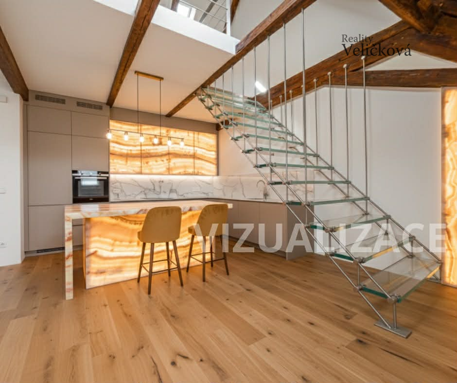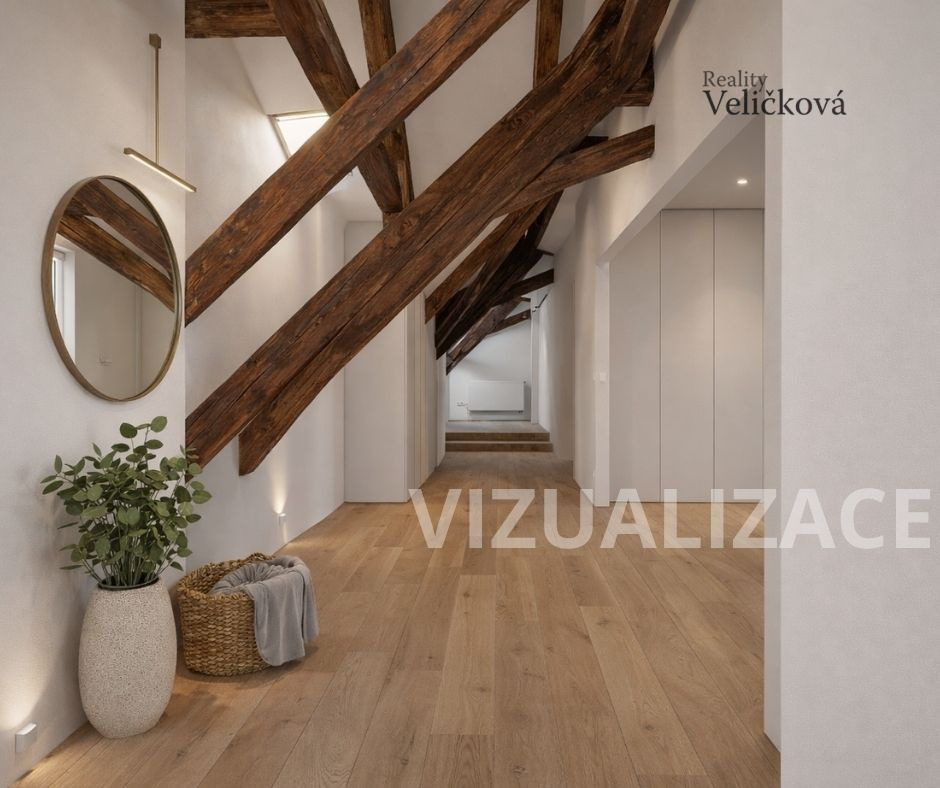 Unikátní mezonetový byt v podkroví historického domu v srdci Prahy 1
