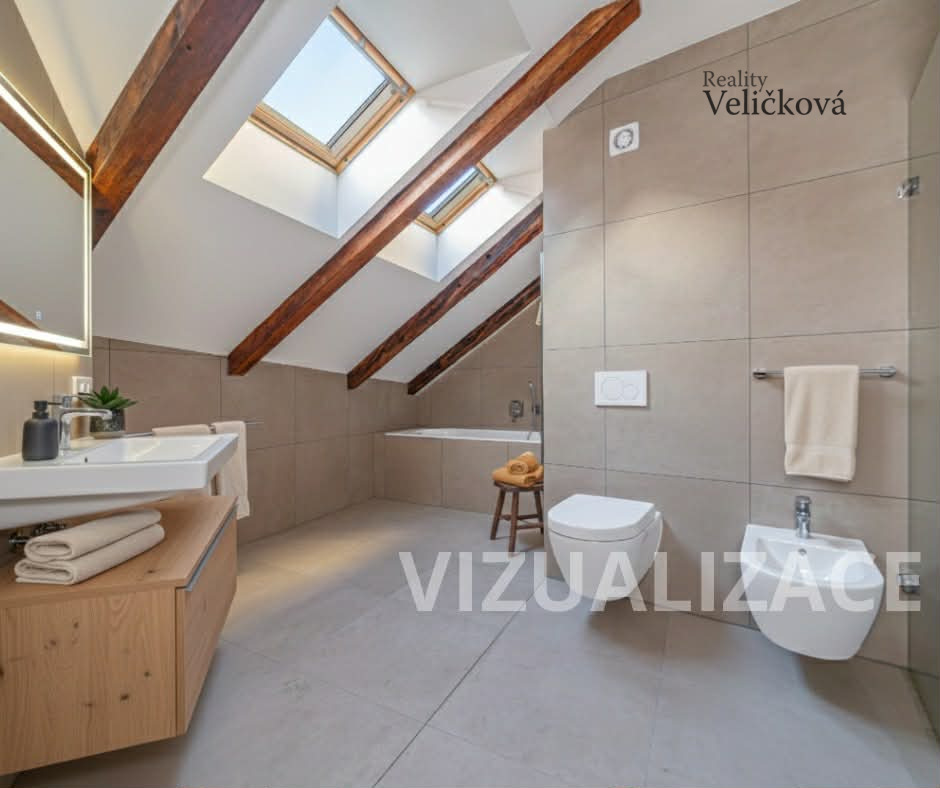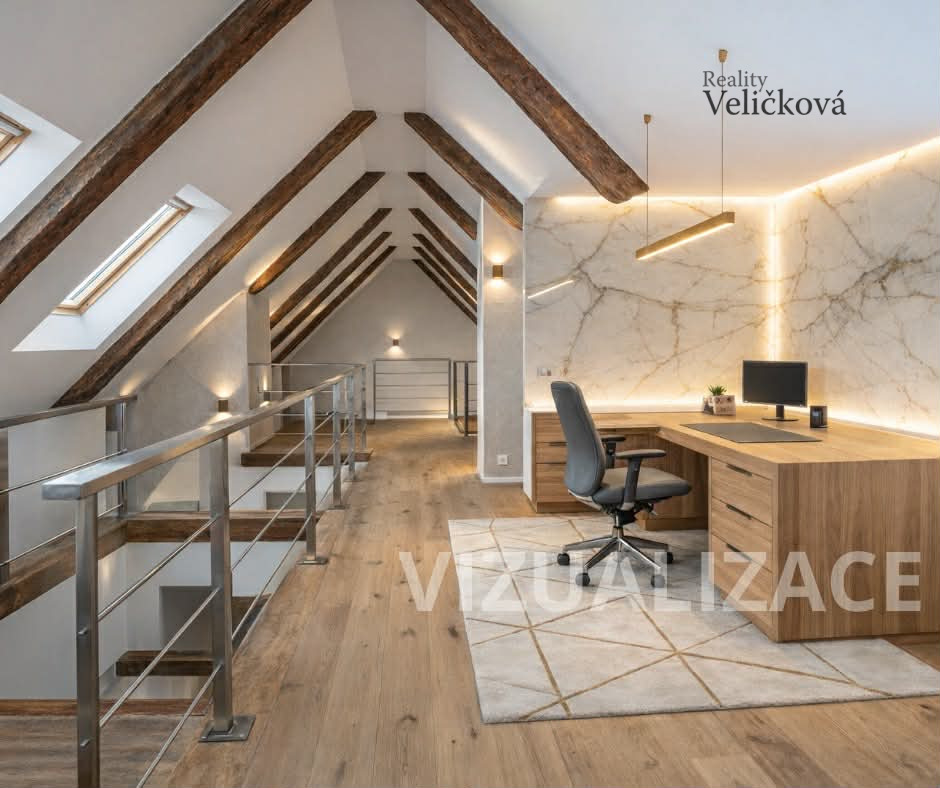 Nadstandardně prostorný byt o celkové obytné ploše 170 m² byl vytvořen citlivou a promyšlenou půdní vestavbou, která propojuje autentickou atmosféru staré Prahy s moderními nároky na komfortní bydlení.