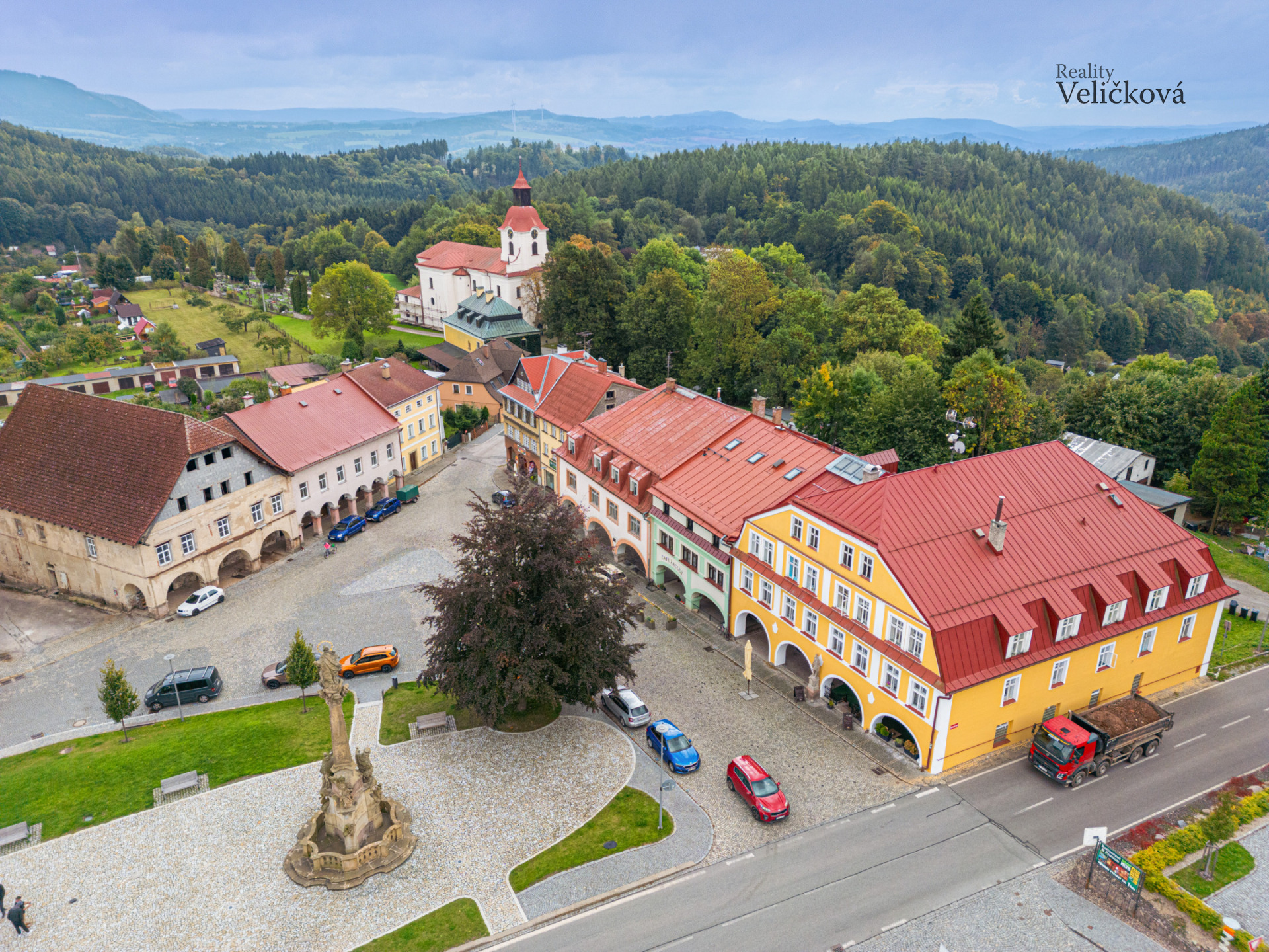 Nabízíme k prodeji investiční činžovní dům se sedmi bytovými jednotkami a komerčním prostorem v přízemí, který se nachází přímo v centru města Žacléř na Rýchorském náměstí.