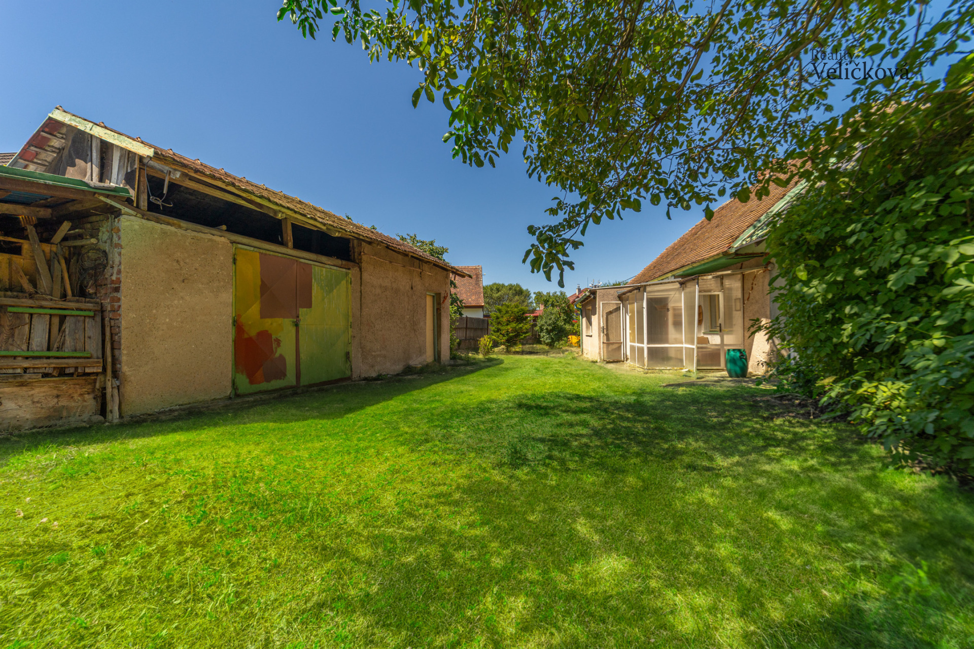 Zahrada je osázena vzrostlou zelení a poskytuje dostatek prostoru i soukromí. Díky své rozloze umožňuje široké možnosti využití – od vytvoření krásné okrasné nebo užitkové zahrady, přes stavbu pergoly či bazénu, až po výstavbu nového domu s dostatečným odstupem od sousedních staveb.
