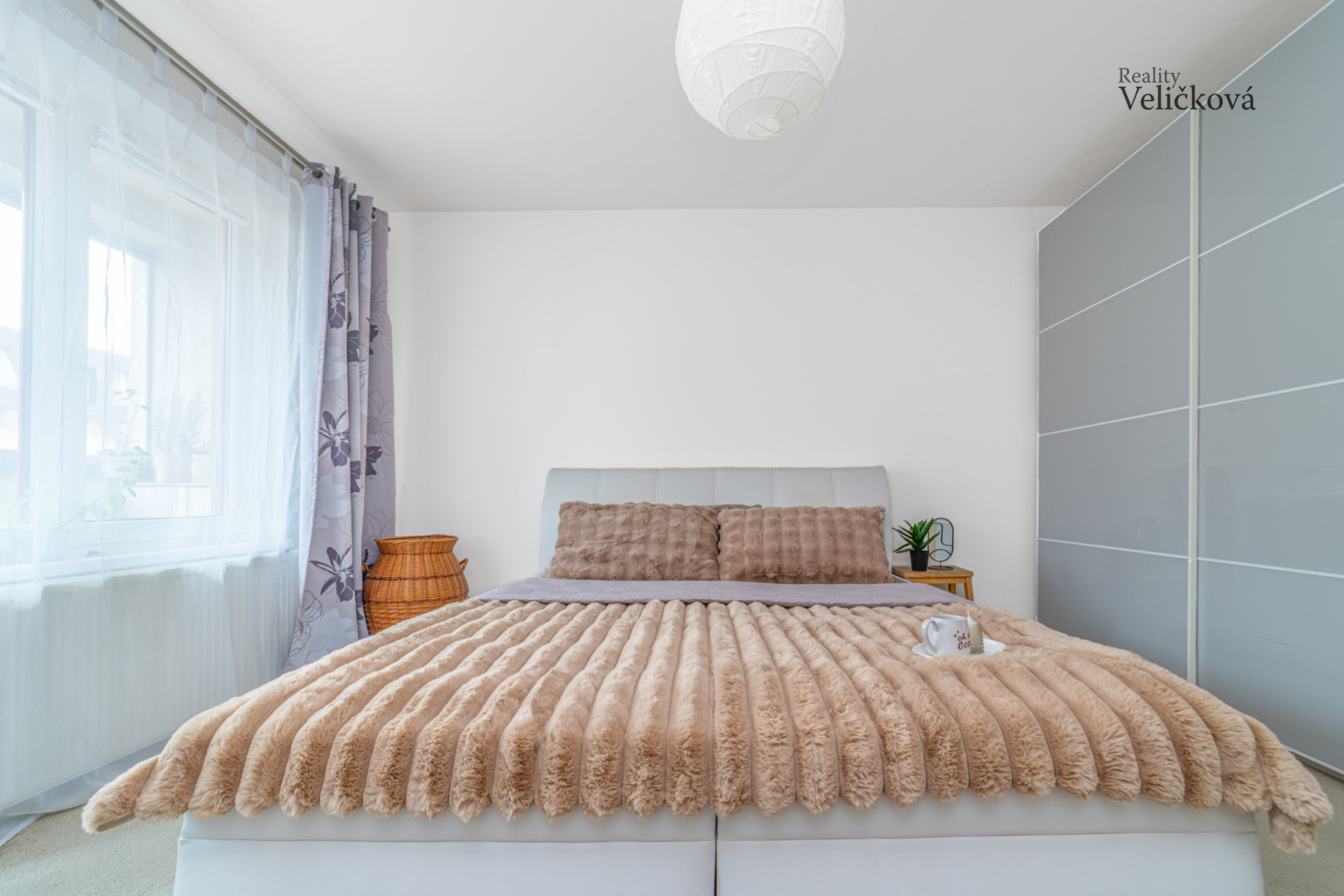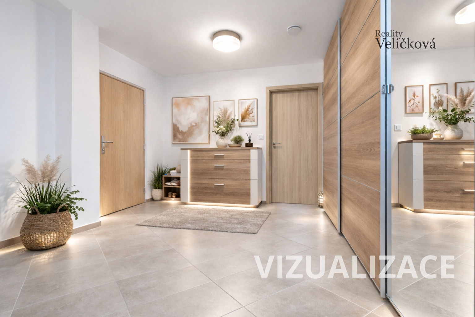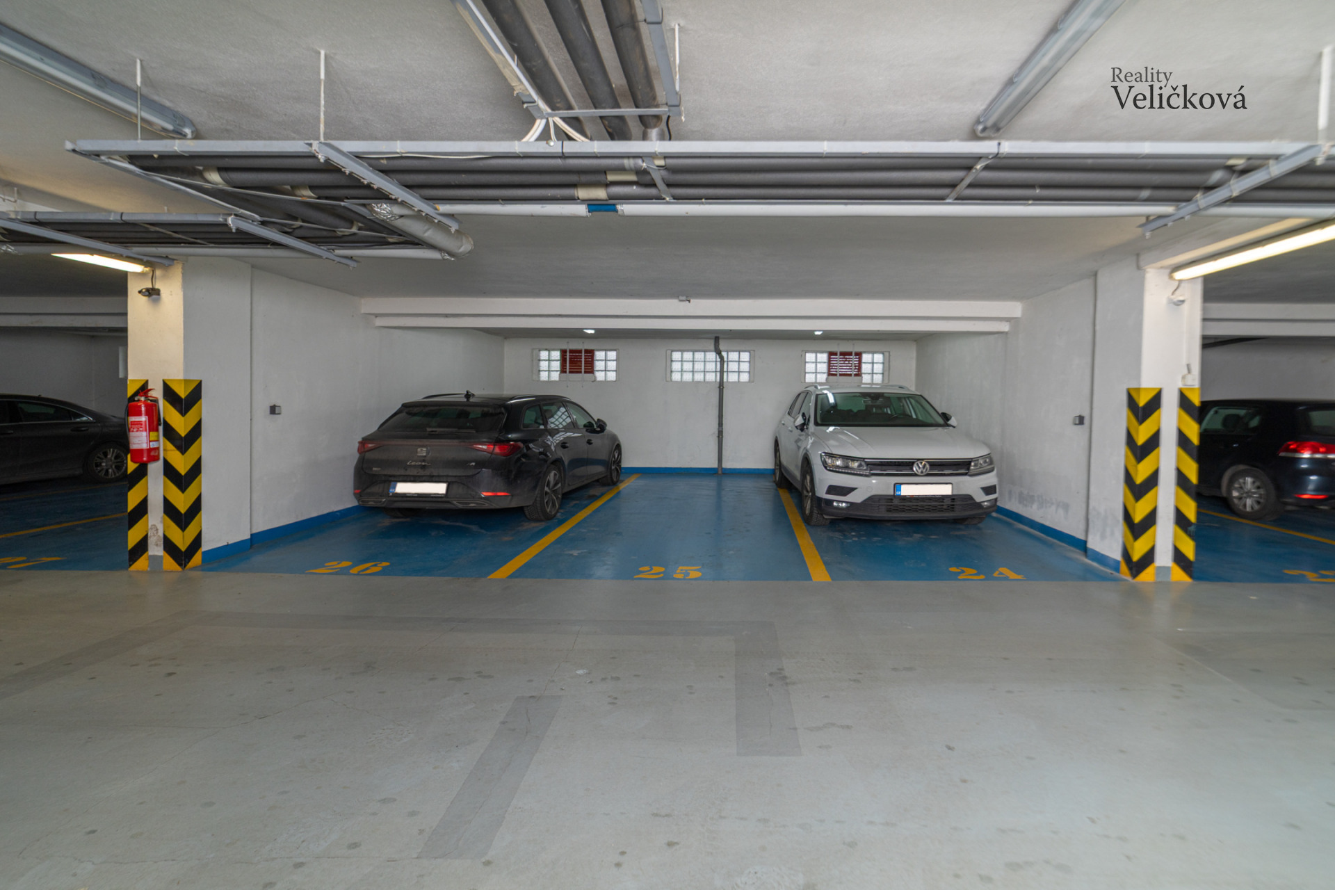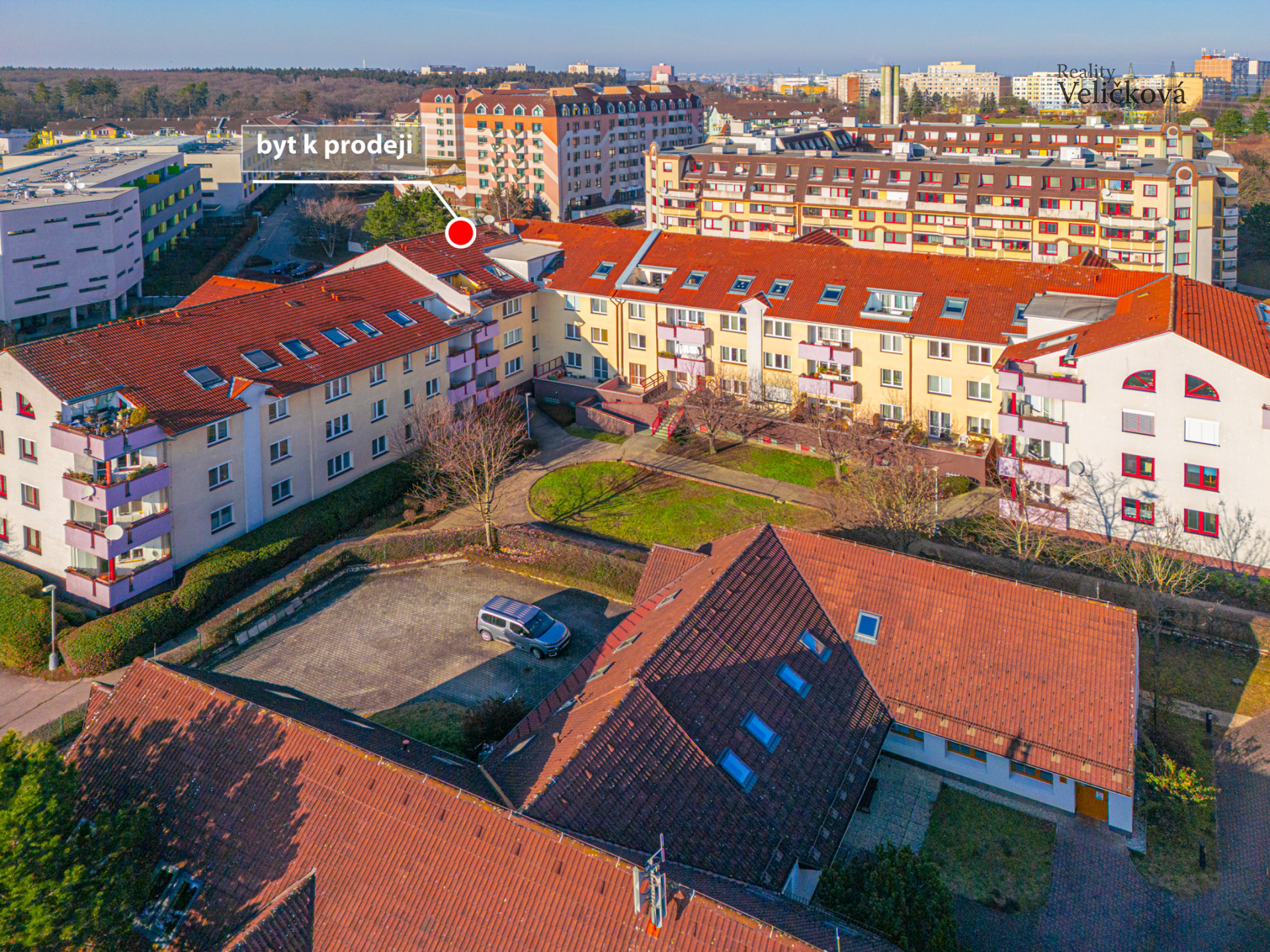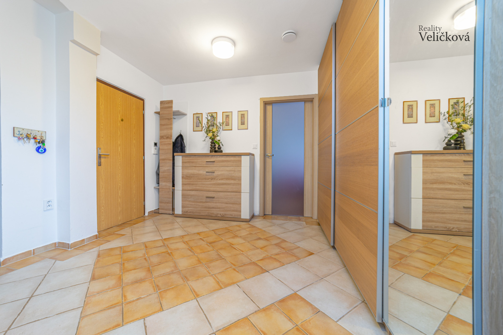 Dům byl zkolaudován v r. 1996, byt i budova však prošly v posledních letech dalšími rekonstrukcemi, která zahrnovaly např. modernizaci koupelny a WC (2023), instalaci klimatizace (2025), zasklení lodžie (2024) a další. Díky tomu nabízí velmi příjemné a funkční bydlení bez nutnosti větších investic. Dispozice bytu jsou velmi nadčasové a moderní, s oddělenou denní a klidovou částí. Vstup do bytu je prostorný, předsíň nabízí velkorysých 12,96 m2. Z ní je přímý přístup do kuchyně se spíží a jídelnou (popř. obývacím pokojem). Přímo z kuchyně je vstup na vloženou atriovou terasou (11,89 m2). Tato část bytu je plynule napojena na obývací pokoj s pracovnou (27,51 m2). Z předsíně pokračujeme kolem sam. toalety do klidové části bytu, čítající chodbu, velmi moderní koupelnu se sprchovým koutem a druhou toaletou a dále navazují 2 ložnice o výměrách 14,7 m2 a 16,72 m2, jedna z nich nabízí vlastní lodžii. V suterénu budovy je k dispozici sklepní kóje (3,44 m2), ke které se prochází garážovým prostorem, kde je možné po dohodě s majitelem pronajmout jedno stání.