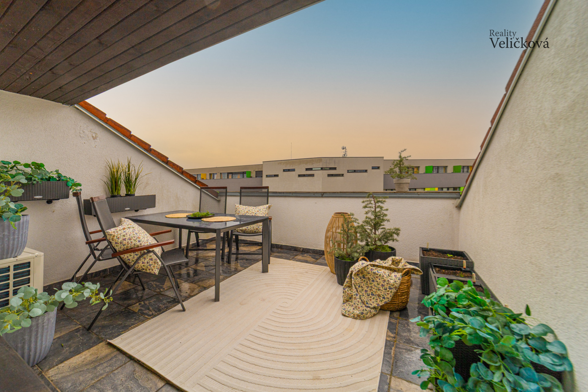 Nabízíme k prodeji jedinečný podkrovní byt o dispozici 4+kk/3+1 a celkové ploše s příslušenstvím 129,45 m², který se nachází ve 4. nadzemním podlaží bytového domu v klidné a vyhledávané lokalitě Praha – Kunratice, ul. U Zeleného ptáka, jen 5 min. jízdy od obchodního centra Westfield Chodov. Byt Vás nadchne nejen příjemnou lokalitou, ale zároveň dostatkem prostoru, světla a soukromí.