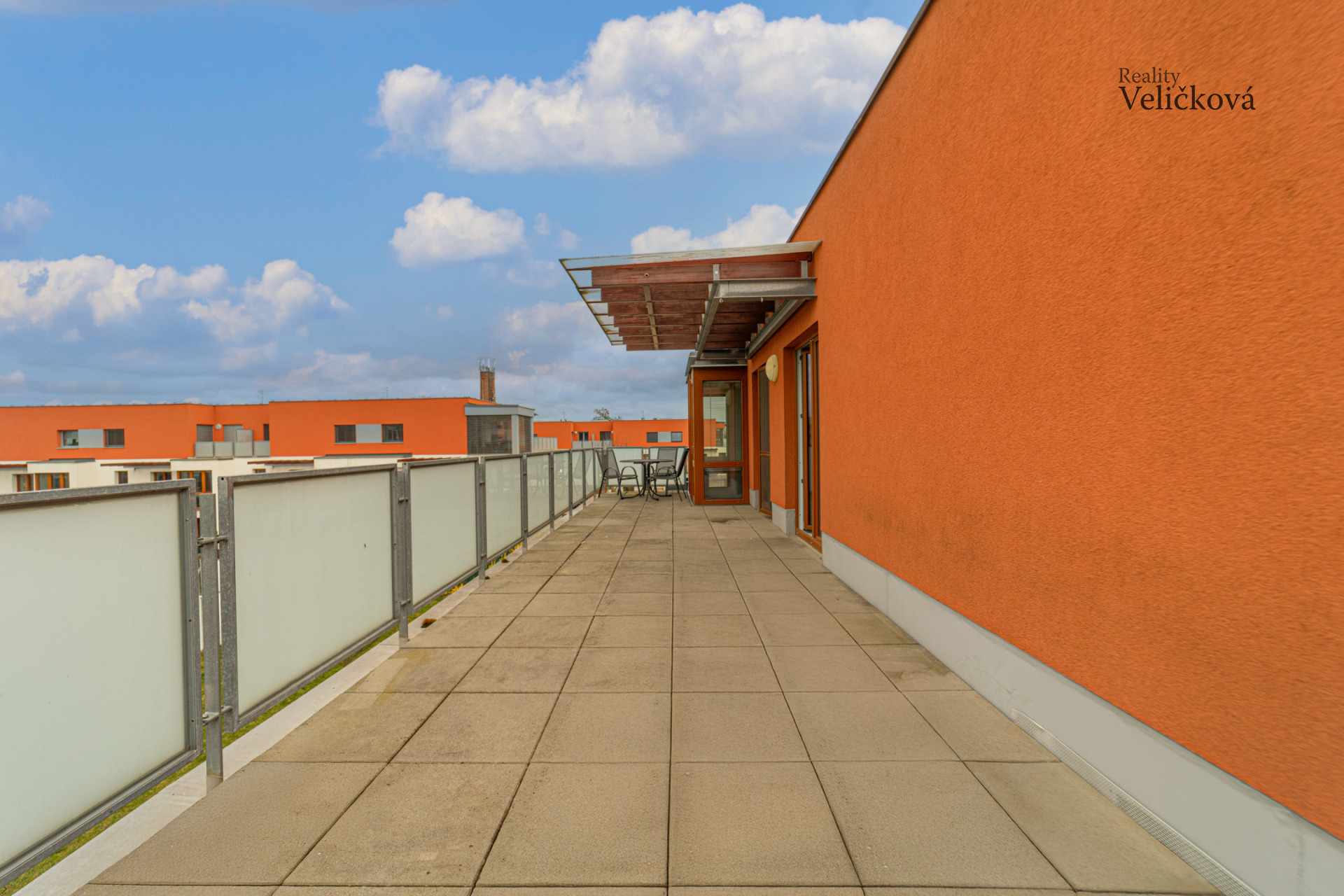Velkou předností bytu jsou dvě prostorné terasy o celkové ploše 42 m², které poskytují ideální prostor pro odpočinek i posezení. K bytu náleží sklep o velikosti 3 m² a vlastní parkovací stání, které je zahrnuto v ceně nájmu.